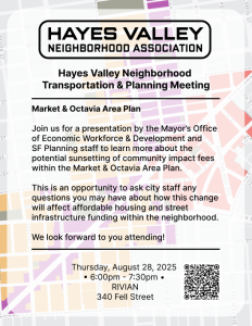 Join us for a presentation by OEWD and the SF Planning staff to learn more about the potential sunsetting of community impact fees within the Market & Octavia Area Plan. This is your opportunity to ask city staff any questions you may have about how this change will affect affordable housing and street infrastructure funding within the neighborhood. RSVP on Eventbrite!