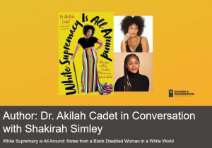 Join in for a special Black Futures Month talk between Dr. Akilah Cadet — author, activist, founder and CEO of Change Cadet — and Booker T. Executive Director, Shakirah Simley. The duo will discuss Dr. Cadet’s new book White Supremacy Is All Around: Notes from a Black Disabled Woman in a White World. Dismantling white supremacy through storytelling is at the core of Dr. Cadet’s work as a leader, speaker, creative director, producer, writer, editor, co-owner of the Oakland Roots and Soul soccer teams. The event will feature a special performance by Michael Wayne Turner III the classically trained thespian and award-winning poet behind Hat Matter. RSVP here!