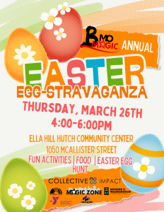 Join us for our Annual Easter EGGstravaganza! We will have food, activity tables, and an Easter egg hunt. The Easter Bunny will make an appearance, so you won’t want to miss out!