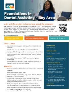 Get ready to kickstart a thriving dental career. We have curated a comprehensive curriculum that focuses on key skills needed to jumpstart your dental career. As part of the program, participants will have the opportunity to put their learning into practice during a paid internship at a dental office. View the full eligibility requirements here. Applications due today.