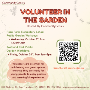 Volunteers will be participating in garden maintenance activities including but not limited to weeding, watering, soil amendments, composting, trash pick up, large and small scare infrastructure projects across our program sites. Sign up here!