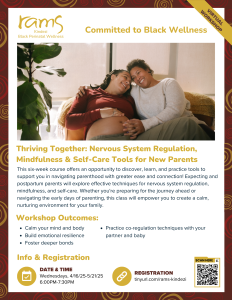 Runs for 6 weeks, on Wednesdays, from 4/16 to 5/21 from 6-7:30pm. Expecting and postpartum parents will explore effective techniques for nervous system regulation, mindfulness, and self-care. Sign up here!