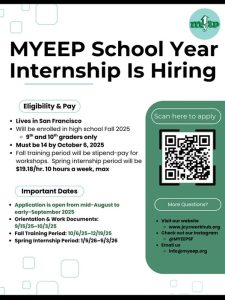 To be eligible, you must live in San Francisco and be enrolled as a 9th or 10th grader during the fall of the 2025SY and have turned 14 by October 6th. Get paid a stipend during the fall semester for attending workshops and upgrade during the spring semester by working up to 10 hours per week and earning $19.18/hour. Apply online!