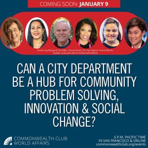 Join Dr. Sheryl Davis as she moderates a timely conversation, “Navigating Identity in a Complex World”, at the Commonwealth Club of California (110 The Embarcadero), on Thursday, January 9th from 6-8pm. Hear the experiences of former community-oriented department heads, a civil rights attorney and a former controller who has ideas about making the city more flexible and responsive. The program can be viewed in-person or online. Tickets are free and can be reserved here!