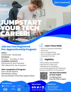 Open to young adults aged 18-24, this program will provide the hardware, coding instructions, and critical skills needed to pursue tech careers. Participants will learn IT skills, an introduction into programming, basic terminology, and skills needed for a future career in tech. Earn a $1,100 stipend upon completion of the program. Apply here!