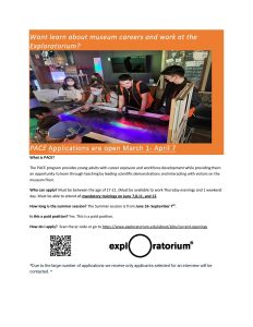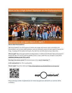 High School Explainer – Explainers work on the museum floor with visitors, exploring hands-on exhibits, facilitating demonstrations, answering questions, and tending to other duties. Explainers observe and explore their own learning processes as they are introduced to broad concepts in a range of scientific disciplines. While they provide a valuable service to the Exploratorium and its visitors, Explainers cultivate their own communication and leadership skills, expand on their scientific knowledge, and learn from each other via peer mentorship. This is a paid position at $18.93/hour, and will be expected to work 2-3 days per week.
