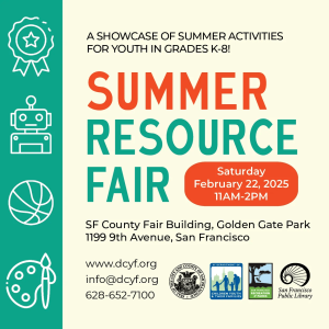 Explore all day programs, sleepaway camps, programs that specialize in sports, arts, STEM, and more. The event always brings in well over 2,000 San Francisco children, youth, and families who are looking for summer programs, camps, and other services. This is a free, family friendly event.